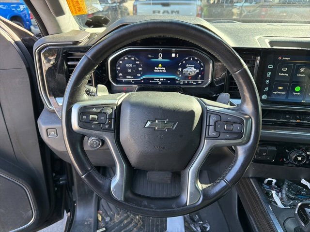 PRICED UNDER MARKET, DEALER INSPECTED AND SERVICED, Certified for extended service contract coverage, 10-Speed Automatic, 4WD, Black Leather, 10-Way Power Driver Seat w/Lumbar, 12.3 Multicolor Reconfigurable Digital Display, 120-Volt Bed Mounted Power Outlet, 120-Volt Instrument Panel Power Outlet, 2 USB Data Ports, 220 Amp Alternator, 3.23 Rear Axle Ratio, 4-Wheel Disc Brakes, 40/20/40 Front Split-Bench Seat, 6 Speakers, 6-Speaker Audio System, ABS brakes, Air Conditioning, All-Star Edition, All-Weather Floor Liner (LPO) (AAK), Alloy wheels, AM/FM radio: SiriusXM with 360L, Apple CarPlay/Android Auto, Auto High-beam Headlights, Auto-Locking Rear Differential, Automatic Emergency Braking, Automatic temperature control, Bluetooth® For Phone, Brake assist, Bumpers: body-color, Chevrolet Connected Access Capable, Chevytec Spray-On Black Bedliner, Cloth Seat Trim, Color-Keyed Carpeting Floor Covering, Compass, Convenience Package, Convenience Package II, Deep-Tinted Glass, Delay-off headlights, Driver door bin, Driver vanity mirror, Dual Exhaust w/Polished Outlets, Dual front impact airbags, Dual front side impact airbags, Dual Rear USB Ports (Charge Only), Dual-Zone Automatic Climate Control, Electric Rear-Window Defogger, Electrical Steering Column Lock, Electronic Cruise Control, Electronic Stability Control, Electronic Transmission Range Selector Shifter, Engine Block Heater, EZ Lift Power Lock & Release Tailgate, Floor Mounted Center Console, Following Distance Indicator, Forward Collision Alert, Front anti-roll bar, Front Bucket Seats, Front Center Armrest w/Storage, Front dual zone A/C, Front fog lights, Front Frame-Mounted Black Recovery Hooks, Front LED Fog Lamps, Front License Plate Kit, Front Pedestrian Braking, Front reading lights, Front Rubberized Vinyl Floor Mats, Front wheel independent suspension, Fully automatic headlights, HD Rear Vision Camera, Heated door mirrors, Heated Driver & Front Outboard Passenger Seats, Heated front seats, Heated Power-Adjustable Outside Mirrors, Heated Steering Wheel, Heated steering wheel, Heavy-Duty Air Filter, High Gloss Black Mirror Caps, Hill Descent Control, Hitch Guidance, Hitch Guidance w/Hitch View, Illuminated entry, Inside Rear-View Mirror w/Tilt, Integrated Trailer Brake Controller, IntelliBeam Automatic High Beam On/Off, Keyless Open & Start, Lane Keep Assist w/Lane Departure Warning, Leather Package, Leather Wrapped Steering Wheel, Leather-Appointed Front Seat Trim, LED Cargo Area Lighting, Low tire pressure warning, Manual Tilt/Telescoping Steering Column, Not Equipped w/Heated Steering Wheel (DISC), Occupant sensing airbag, Off-Road Suspension, OnStar & Chevrolet Connected Services Capable, Outside temperature display, Overhead airbag, Overhead console, Panic alarm, Passenger door bin, Passenger vanity mirror, Power door mirrors, Power driver seat, Power Front Windows w/Driver Express Up/Down, Power Front Windows w/Passenger Express Down, Power Rear Windows w/Express Down, Power Sliding Rear Window w/Rear Defogger, Power steering, Power windows, Preferred Equipment Group 1SP, Premium audio system: Chevrolet Infotainment 3 Premium, Premium Bose 7-Speaker Sound System, Protection Package, Radio data system, Radio: Chevrolet Infotainment 3 Premium System, Rear 60/40 Folding Bench Seat (Folds Up), Rear reading lights, Rear Rubberized-Vinyl Floor Mats, Rear step bumper, Rear Wheelhouse Liners, Rear window defroster, Remote keyless entry, Remote Vehicle Starter System, Security system, SiriusXM w/360L, Speed control, Speed-sensing steering, Split folding rear seat, Standard Suspension Package, Standard Tailgate, Steering Wheel Audio Controls, Steering wheel mounted audio controls, Tachometer, Telescoping steering wheel, Theft Deterrent System (Unauthorized Entry), Tilt steering wheel, Traction control, Trailering App, Trailering Package, Trip computer, Univer