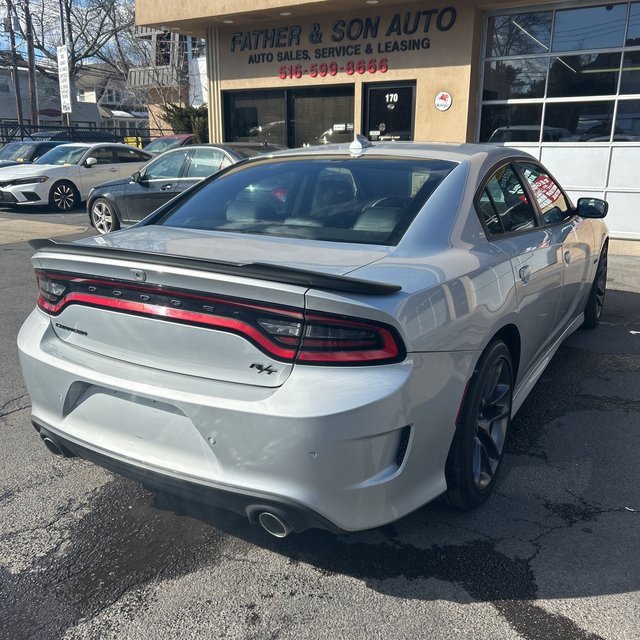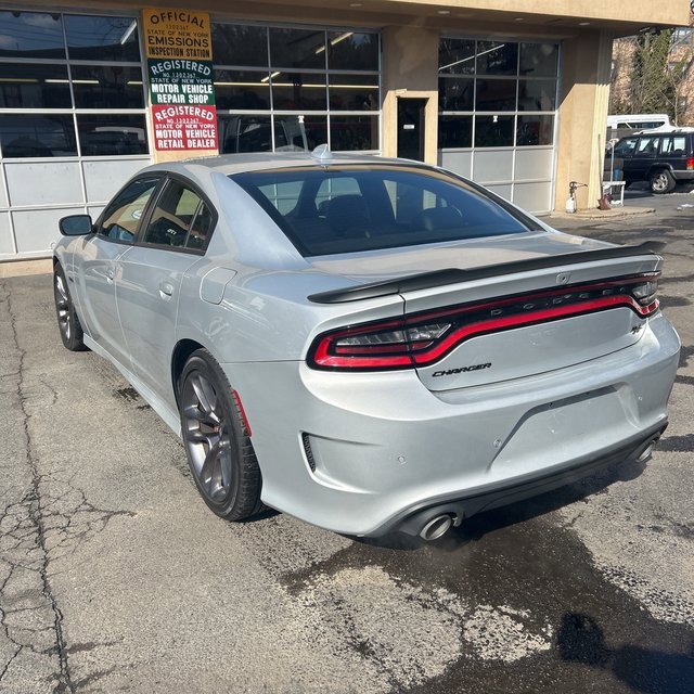 PRICED UNDER MARKET, DEALER INSPECTED AND SERVICED, Certified for extended service contract coverage, Black w/Cloth Performance Seats w/Heat or Daytona Logo Nappa/Alcantara Seat or Nappa/Alcantara Seats w/Logo or Scat Pack Logo Nappa/Alcantara Seat or Super Bee Nappa/Alcantara Seats or Nappa Alcantara Seat Trim w/Green Stitch, 1-Yr SiriusXM Guardian Trial, 2-Piece Shark Fin Antenna, 4-Wheel Disc Brakes, 4G LTE Wi-Fi Hot Spot, 5-Year SiriusXM Traffic Service, 5-Year SiriusXM Travel Link Service, 6 Speakers, 8.4 Touchscreen Display, ABS brakes, Air Conditioning, All Speed Traction Control, Alloy wheels, AM/FM radio: SiriusXM, Anti-whiplash front head restraints, Apple CarPlay, Apple CarPlay/Android Auto, Auto Adjust In Reverse Exterior Mirrors, Auto-Dimming Exterior Driver Mirror, Auto-dimming Rear-View mirror, Automatic temperature control, Black 1-Piece Performance Spoiler, Black Dodge Grille Badge, Black-Edged Premium Floormats, Blacktop Package, Blacktop R/T Badge, Blind Spot & Cross Path Detection, Blind Spot Memory/Power/Heat Mirror, Brake assist, Brake Calipers - Red, Brembo 4-Piston Fixed Caliper Brakes, Bumpers: body-color, Cloth Performance Seats, Compass, Compass Gauge, Delay-off headlights, Deluxe Security Alarm, Driver & Passenger Lower LED Lamps, Driver door bin, Driver vanity mirror, Dual front impact airbags, Dual front side impact airbags, Electronic Stability Control, Emergency communication system: SiriusXM Guardian, Exterior Mirrors Courtesy Lamps, Exterior Mirrors w/Heating Element, Flat-Bottom Steering Wheel, For Details, Visit DriveUconnect.com, Four wheel independent suspension, Front & Rear LED Map Pockets, Front anti-roll bar, Front Bucket Seats, Front Center Armrest, Front dual zone A/C, Front License Plate Bracket, Front Overhead LED Lighting, Front reading lights, Fully automatic headlights, Garage door transmitter: HomeLink, Gloss Black I/P Cluster Trim Rings, Google Android Auto, GPS Antenna Input, GPS Navigation, HD Radio, Heated door mirrors, Heated Front Seats, Heated Steering Wheel, High Perform Suspension, Illuminated entry, Integrated Center Stack Radio, Integrated Voice Command w/Bluetooth, Knee airbag, Leather Shift Knob, Low tire pressure warning, Media Hub (2 USB, AUX), Mopar Bright Door Sills, Mopar Interior Appearance Group, MOPAR Premium Floor Mats w/Logo, Nappa/Alcantara Performance Seat, Navigation & Travel Group, Occupant sensing airbag, Outside temperature display, Overhead airbag, Overhead console, Panic alarm, ParkView Rear Back-Up Camera, Passenger door bin, Passenger vanity mirror, Performance Handling Group (DISC), Plus Group, Power 2-Way Driver Lumbar Adjust, Power 2-Way Passenger Lumbar Adjust, Power 8-Way Driver Seat, Power door mirrors, Power driver seat, Power Front Driver/Passenger Seats, Power steering, Power Sunroof, Power Tilt/Telescope Steering Column, Power windows, Premium-Stitched Dash Panel, Projector LED Fog Lamps, Quick Order Package 26N, Radio: Uconnect 4C Nav w/8.4 Display, Radio: Uconnect 4C w/8.4 Display, Radio/Driver Seat/Mirrors Memory, Rear anti-roll bar, Rear Armrest w/Cupholder Seat, Rear reading lights, Rear seat center armrest, Rear window defroster, Remote keyless entry, Rhombi 2-Pc Wheel Center Cap, Satin Black Charger Decklid Badge, Satin Black Dodge Tail Lamp Badge, SiriusXM Traffic Plus, SiriusXM Travel Link, Speed control, Speed-Sensitive Wipers, Split folding rear seat, Spoiler, Sport steering wheel, Steering wheel mounted audio controls, Tachometer, Telescoping steering wheel, Tilt steering wheel, Traction control, Trip computer, Trunk Mat w/Logo, USB Host Flip, Variably intermittent wipers, Ventilated Front Seats, Wheels: 20 x 8 Black Noise Painted, Wheels: 20 x 8 Machined w/Granite Pocket, Wheels: 20 x 9 Lo Gloss Granite Crystal, Black w/Cloth Performance Seats w