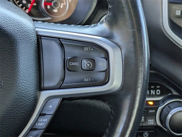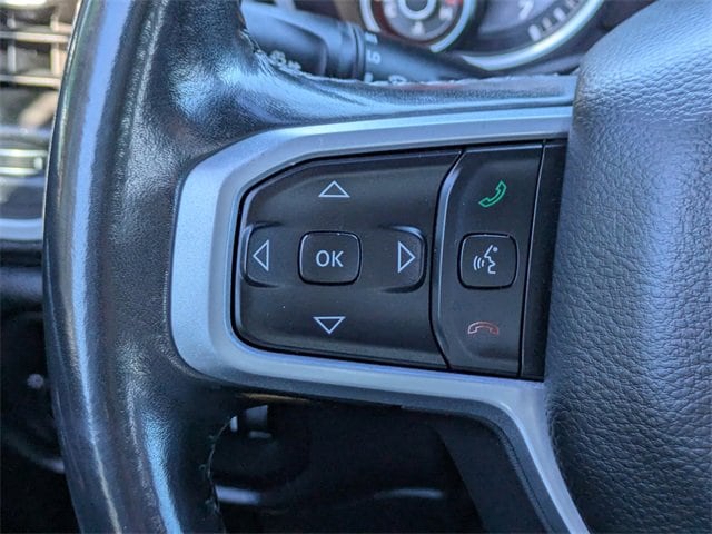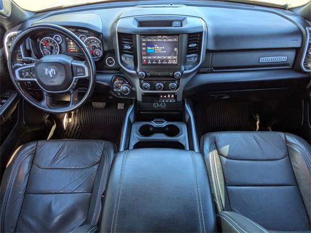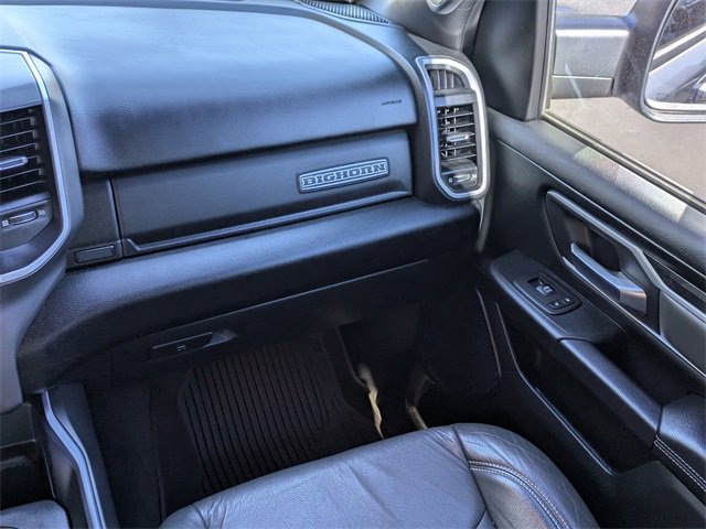 PRICED UNDER MARKET, DEALER INSPECTED AND SERVICED, Certified for extended service contract coverage, 2nd Row In Floor Storage Bins, 3 Rear Seat Head Restraints, 3.21 Rear Axle Ratio, 33 Gallon Fuel Tank, 4 Way Front Headrests, 4-Wheel Disc Brakes, 400W Inverter, 48V Belt Starter Generator, 6 Speakers, 9 Amplified Speakers w/Subwoofer, ABS brakes, Air Conditioning, Alloy wheels, AM/FM radio, Auto-Dimming Rear-View Mirror, Big Horn Badge, Big Horn IP Badge, Big Horn Level 1 Equipment Group, Black Premium Power Mirrors, Brake assist, Bumpers: chrome, Class IV Receiver Hitch, Cloth Bench Seat, Cluster 3.5 TFT Color Display, Compass, Delay-off headlights, Driver door bin, Dual front impact airbags, Dual front side impact airbags, Electronic Stability Control, Engine Calibration Flash (DISC), Foam Bottle Insert (Door Trim Panel), Front & Rear Rubber Floor Mats, Front anti-roll bar, Front Center Armrest w/Storage, Front fog lights, Front reading lights, Front Seat Back Map Pockets, Front wheel independent suspension, Fully automatic headlights, Glove Box Lamp, GPS Antenna Input, Heated door mirrors, Illuminated entry, Leather steering wheel, Low tire pressure warning, Occupant sensing airbag, Outside temperature display, Overhead airbag, Overhead console, Panic alarm, ParkSense Front/Rear Park Assist w/Stop, ParkView Rear Back-Up Camera, Passenger door bin, Passenger vanity mirror, Power 4-Way Driver Lumbar Adjust, Power 8-Way Driver Seat, Power Adjustable Pedals, Power door mirrors, Power steering, Power windows, Quick Order Package 27Z Big Horn, Radio data system, Radio: Uconnect 4 w/8.4 Display, RamBox Cargo Management System, RamBox Cargo Management System w/ASG, Rear 60/40 Folding Seat, Rear anti-roll bar, Rear Dome w/On/Off Switch Lamp, Rear Power Sliding Window, Rear seat center armrest, Rear step bumper, Rear Window Defroster, Remote keyless entry, Remote Start System, SiriusXM Satellite Radio, Speed control, Split folding rear seat, Steering wheel mounted audio controls, Sun Visors w/Illuminated Vanity Mirrors, Tachometer, Telescoping steering wheel, Tilt steering wheel, Traction control, Trip computer, Universal Garage Door Opener, Variably intermittent wipers, Voltmeter, Wheels: 20 x 9 Aluminum Chrome Clad, 2nd Row In Floor Storage Bins, 3 Rear Seat Head Restraints, 3.21 Rear Axle Ratio, 33 Gallon Fuel Tank, 4 Way Front Headrests, 4-Wheel Disc Brakes, 400W Inverter, 48V Belt Starter Generator, 6 Speakers, 9 Amplified Speakers w/Subwoofer, ABS brakes, Air Conditioning, Alloy wheels, AM/FM radio, Auto-Dimming Rear-View Mirror, Big Horn Badge, Big Horn IP Badge, Big Horn Level 1 Equipment Group, Black Premium Power Mirrors, Brake assist, Bumpers: chrome, Class IV Receiver Hitch, Cloth Bench Seat, Cluster 3.5 TFT Color Display, Compass, Delay-off headlights, Driver door bin, Dual front impact airbags, Dual front side impact airbags, Electronic Stability Control, Engine Calibration Flash (DISC), Foam Bottle Insert (Door Trim Panel), Front & Rear Rubber Floor Mats, Front anti-roll bar, Front Center Armrest w/Storage, Front fog lights, Front reading lights, Front Seat Back Map Pockets, Front wheel independent suspension, Fully automatic headlights, Glove Box Lamp, GPS Antenna Input, Heated door mirrors, Illuminated entry, Leather steering wheel, Low tire pressure warning, Occupant sensing airbag, Outside temperature display, Overhead airbag, Overhead console, Panic alarm, ParkSense Front/Rear Park Assist w/Stop, ParkView Rear Back-Up Camera, Passenger door bin, Passenger vanity mirror, Power 4-Way Driver Lumbar Adjust, Power 8-Way Driver Seat, Power Adjustable Pedals, Power door mirrors, Power steering, Power windows, Quick Order Package 27Z Big Horn, Radio data system, Radio: Uconnect 4 w/8.4 Display, RamBox Cargo Management Syste