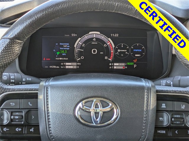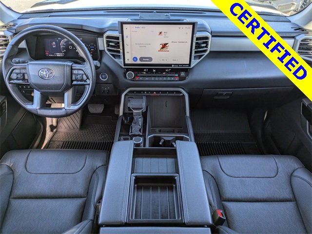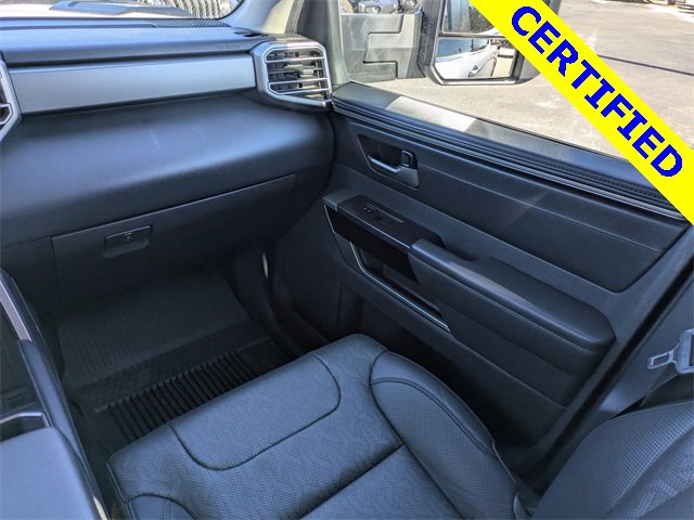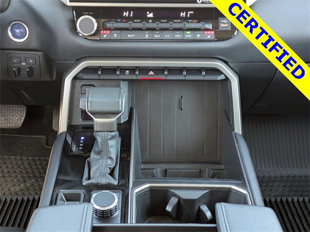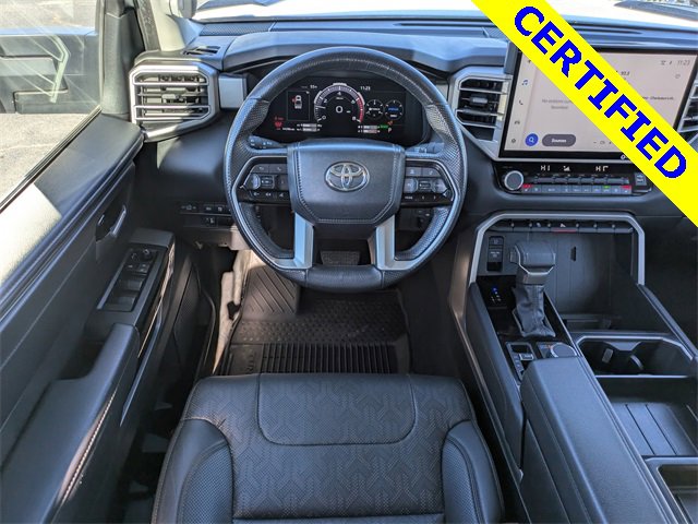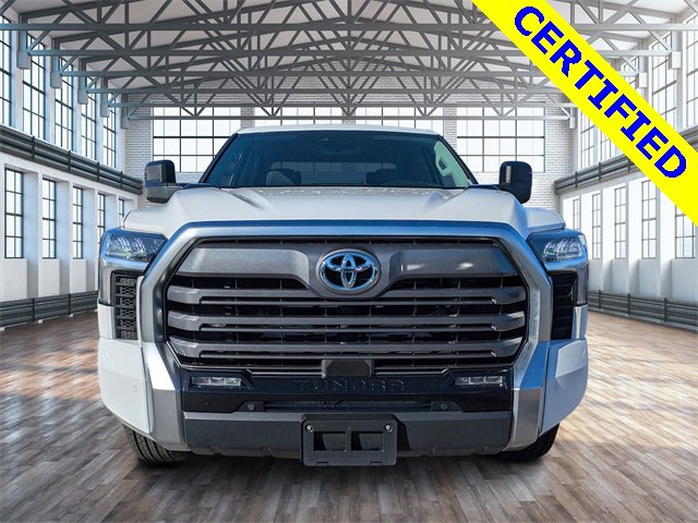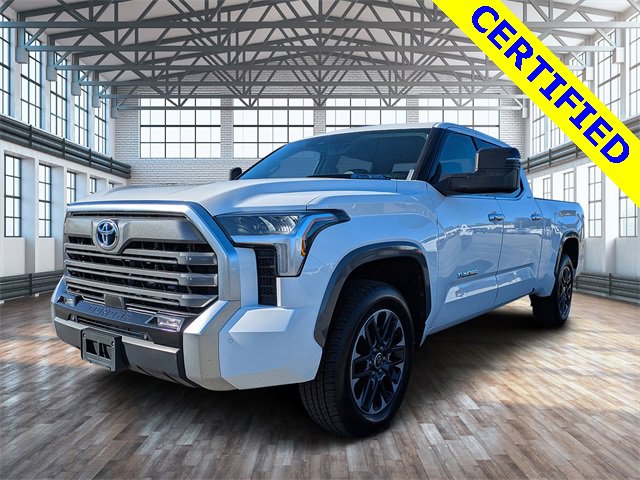 72 point inspection, Certified for extended service plan, Priced below market value, Tundra Hybrid Limited, 4D Crew Cab, 3.4L V6, 10-Speed Automatic, 4WD, Ice, Black Artificial Leather, 9 Speakers, All Weather Floor Liners (TMS), AM/FM radio: SiriusXM, Apple CarPlay/Android Auto, Auto-dimming door mirrors, Auto-dimming Rear-View mirror, Black Power Heated Outside Tow Mirrors, Blind Spot Monitor, Bumpers: body-color, Delay-off headlights, Driver door bin, Driver vanity mirror, Front & Rear Mud Guards, Front fog lights, Front reading lights, Fully automatic headlights, Garage door transmitter: HomeLink, Heated door mirrors, Heated steering wheel, Illuminated entry, Multi-Terrain Back Monitor, Navigation System, Panic alarm, Power door mirrors, Radio data system, Radio: Audio Plus, Radio: Premium Audio w/JBL, Rear step bumper, Security system, Speed control, TRD Off-Road Package, Turn signal indicator mirrors, Wheels: 20" x 8.5" Black Alloy, 20" x 8" Alloy Wheels, 3.31 Axle Ratio, 4-Wheel Disc Brakes, ABS brakes, Air Conditioning, Alloy wheels, Auto High-beam Headlights, Automatic temperature control, Brake assist, Dual front impact airbags, Dual front side impact airbags, Electronic Stability Control, Emergency communication system: Safety Connect (10-year trial), Exterior Parking Camera Rear, Front anti-roll bar, Front Bucket Seats, Front Center Armrest, Front dual zone A/C, Front wheel independent suspension, Heated & Ventilated Front Bucket Seats, Heated front seats, Knee airbag, Leather Shift Knob, Low tire pressure warning, Memory seat, Occupant sensing airbag, Outside temperature display, Overhead airbag, Overhead console, Passenger door bin, Passenger vanity mirror, Power driver seat, Power passenger seat, Power steering, Power windows, Rear reading lights, Rear seat center armrest, Rear window defroster, Remote keyless entry, SofTex Seat Trim, Speed-sensing steering, Split folding rear seat, Steering wheel mounted audio controls, Tachometer, Telescoping steering wheel, Tilt steering wheel, Traction control, Trip computer, Variably intermittent wipers, Ventilated front seats, Voltmeter, NAVIGATION, BACKUP CAMERA, BLUETOOTH, HEATED SEATS, COOLED SEATS, 4x4, BED LINER, Tundra Hybrid Limited, 4D Crew Cab, 3.4L V6, 10-Speed Automatic, 4WD, Ice, Black Artificial Leather, 9 Speakers, All Weather Floor Liners (TMS), AM/FM radio: SiriusXM, Apple CarPlay/Android Auto, Auto-dimming door mirrors, Auto-dimming Rear-View mirror, Black Power Heated Outside Tow Mirrors, Blind Spot Monitor, Bumpers: body-color, Delay-off headlights, Driver door bin, Driver vanity mirror, Front & Rear Mud Guards, Front fog lights, Front reading lights, Fully automatic headlights, Garage door transmitter: HomeLink, Heated door mirrors, Heated steering wheel, Illuminated entry, Multi-Terrain Back Monitor, Navigation System, Panic alarm, Power door mirrors, Radio data system, Radio: Audio Plus, Radio: Premium Audio w/JBL, Rear step bumper, Security system, Speed control, TRD Off-Road Package, Turn signal indicator mirrors, Wheels: 20" x 8.5" Black Alloy. 2024 Toyota Tundra Hybrid Limited 3.4L V6 4WD